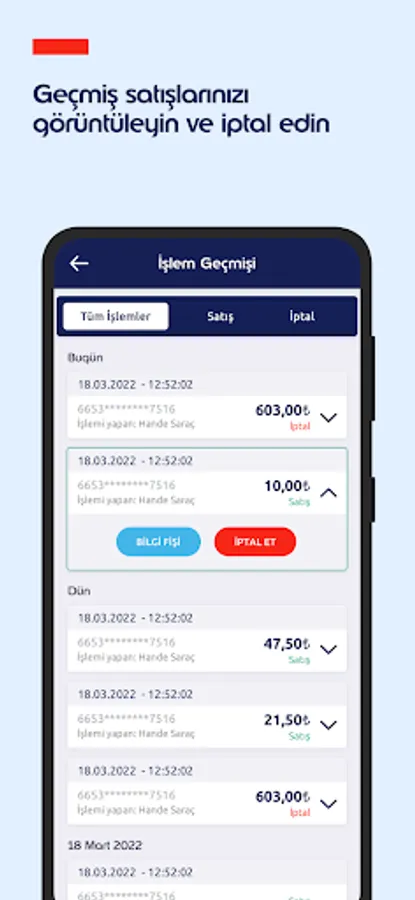 • You can view your past sales transactions and cancel the transaction when necessary.