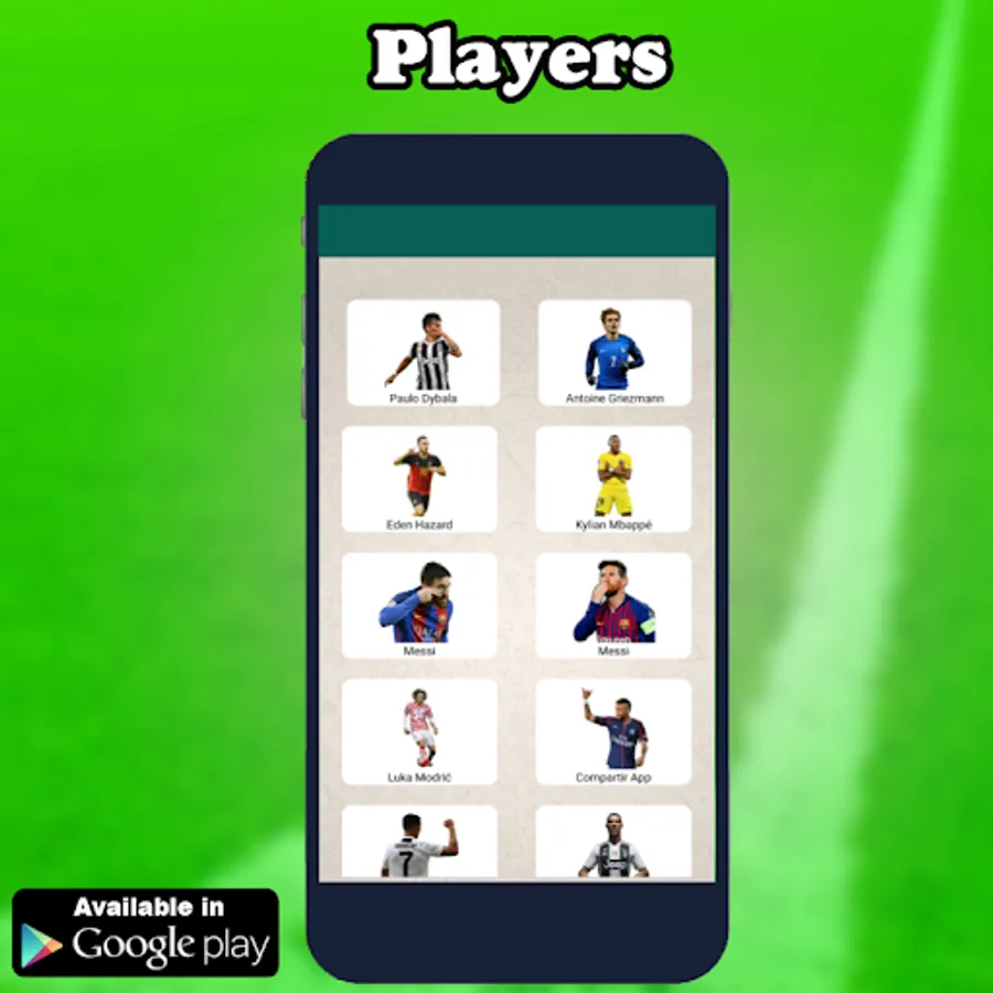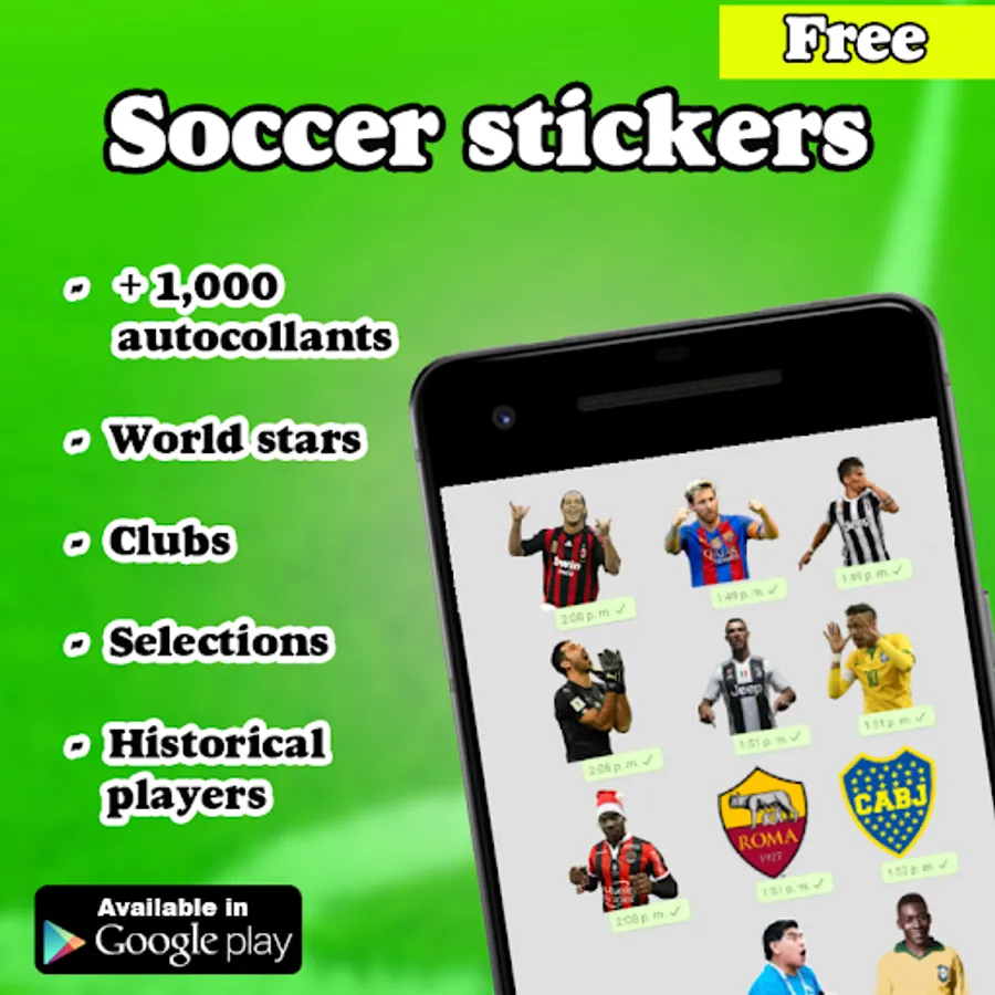 In this App you will find more than 1,000 stickers of soccer players, technical directors and teams from the best leagues in the world, all compiled in a single App so that you can share the stickers with your friends during soccer games.