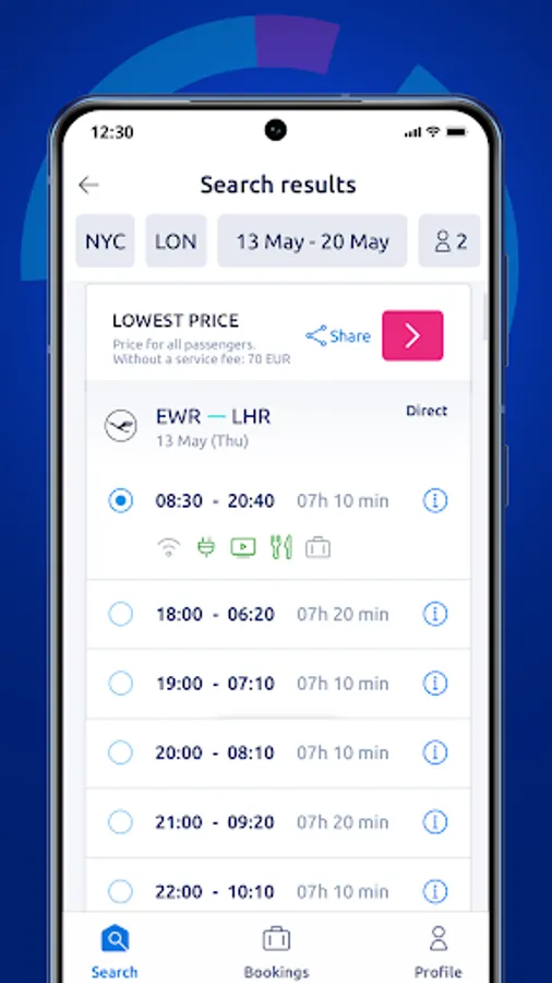• Ofertas de las aerolÃneas seleccionadas, exclusivamente para los usuarios de la aplicación