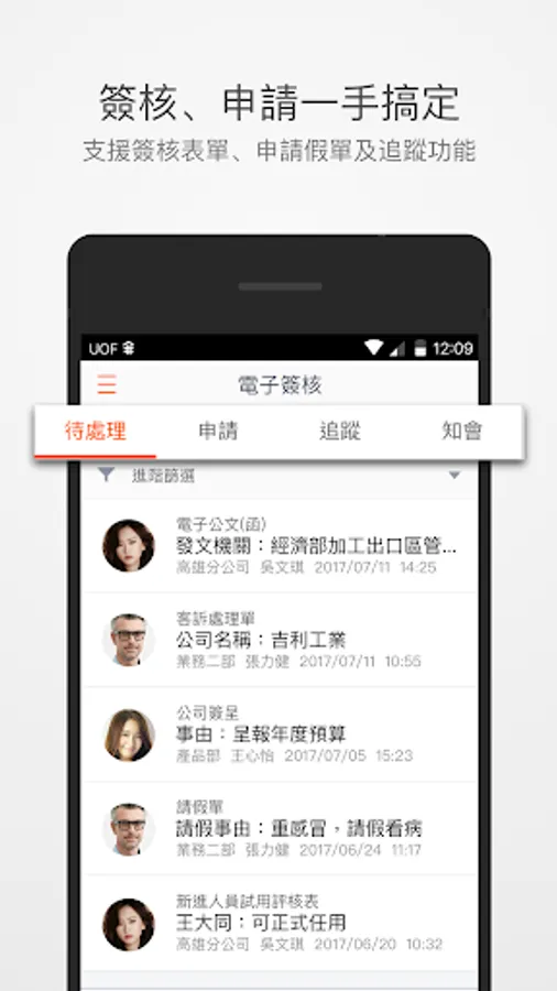 2.百張表單行動申請、簽核、查詢,運籌帷幄於千里之外