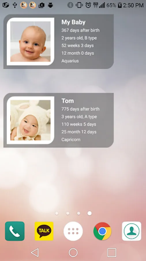 You can check baby's birth date, months, weeks, and age automatically at widget.