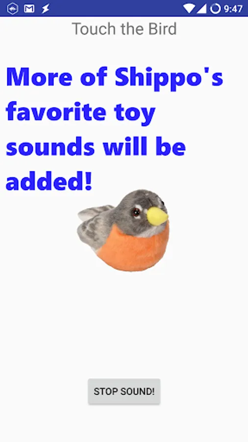 Shippo is my little dog that loves to destroy all of this squeaky toys. Eventually, they don't squeak anymore and they don't look like toys anymore and Shippo becomes sad. This app plays back some of his favorite squeaky toy noises and gives him the zoomies!