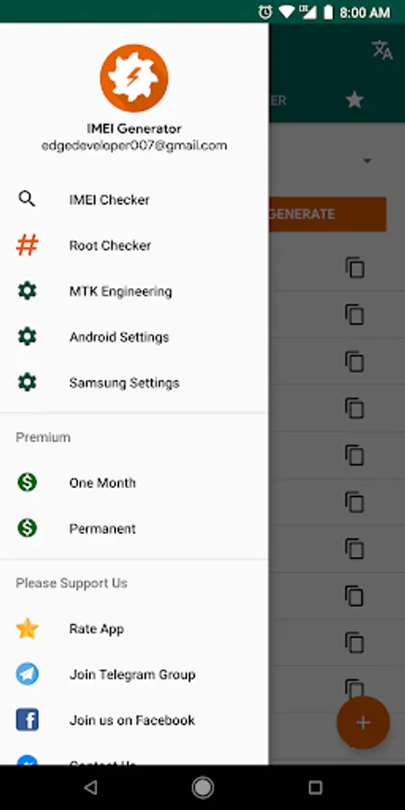✔ The ‘PHONE IMEI’ tab contains a list IMEIs for different phones (including latest phones). And guess what? You can generate up to 1 Million IMEIs from a single tap without any No Duplicate. All generated IMEIs are Unique.