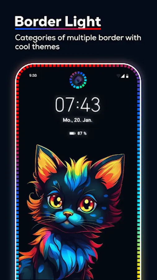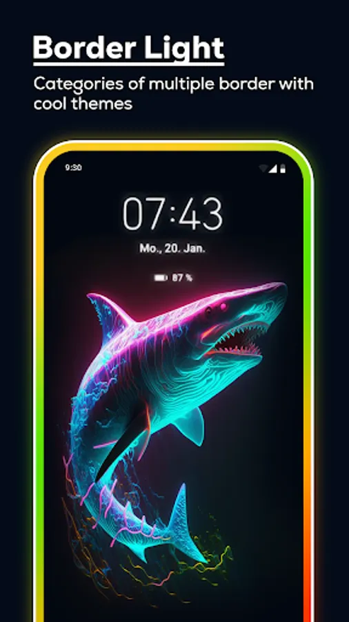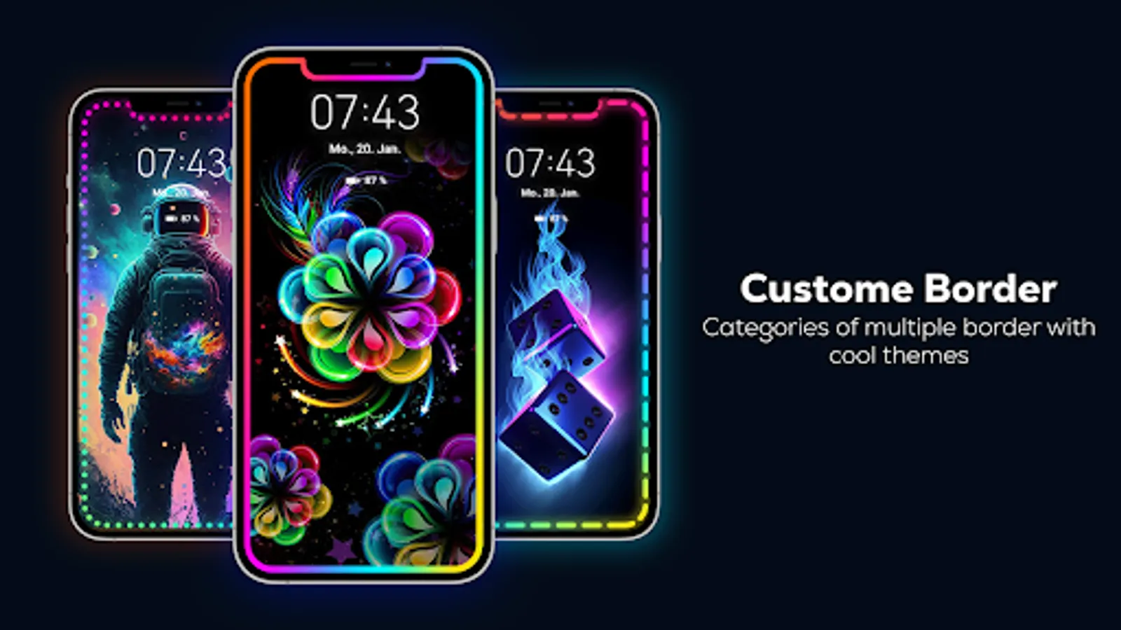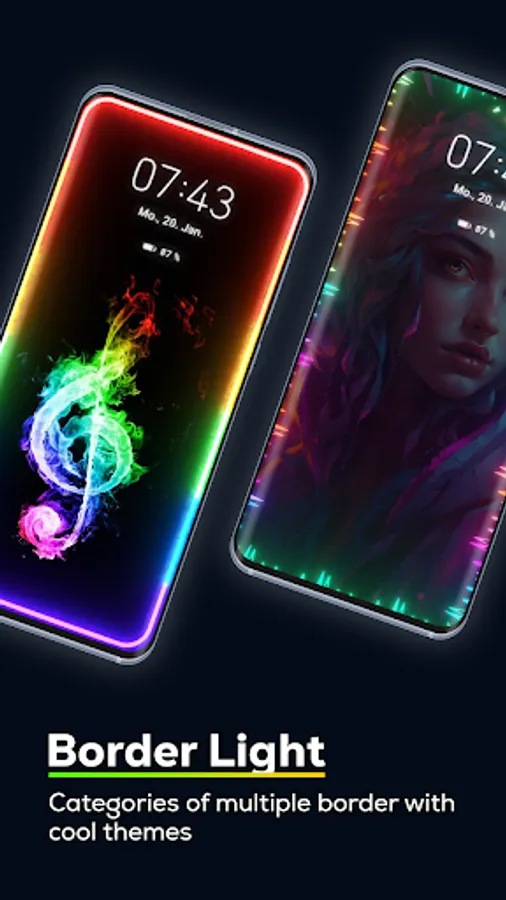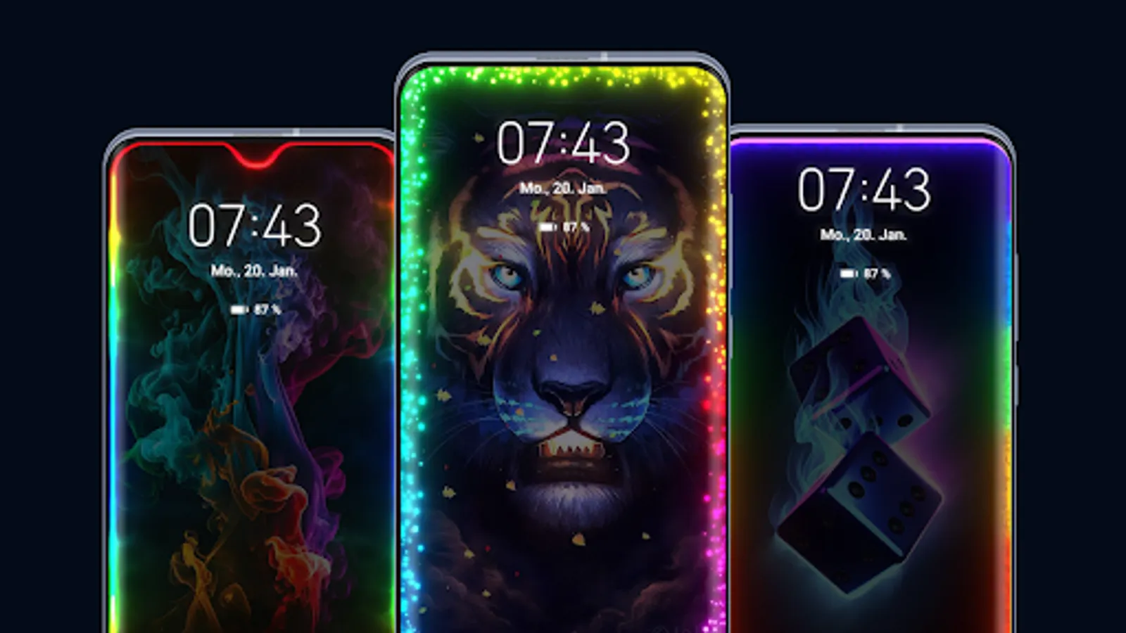 Experience moving border effects with Edge Lighting color Wallpaper app's dynamic animated borderlight themes. Picture your screen alive with dancing lights in various styles.