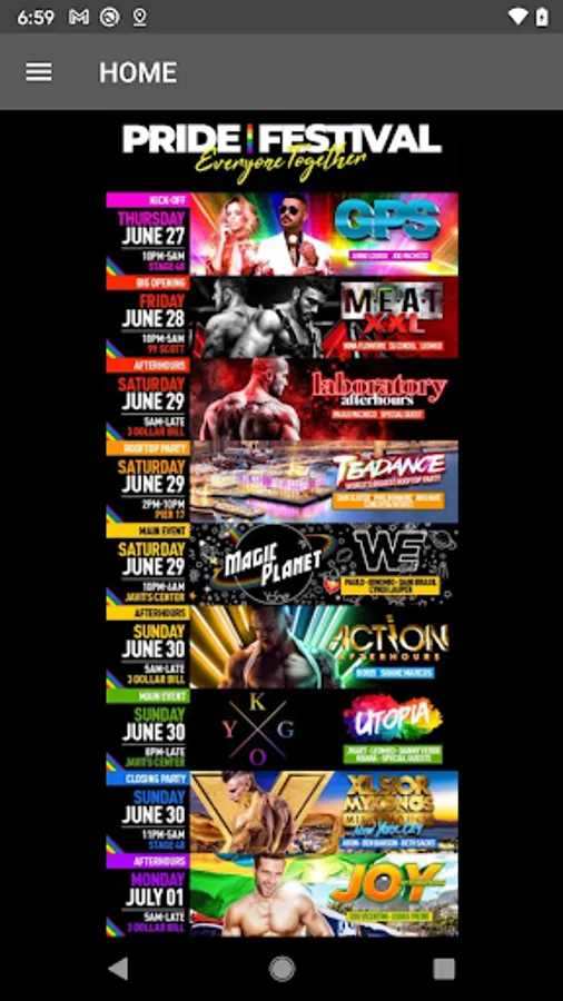 Welcome to the official mobile app for Pride Festival in NYC, also known as Matinée! This app contains information you need to know about our annual party including an events calendar, sponsors, photos and videos.