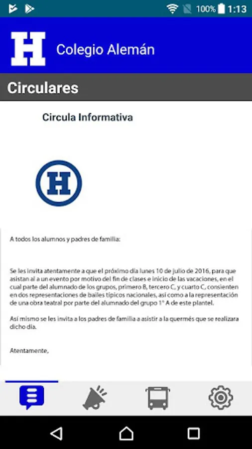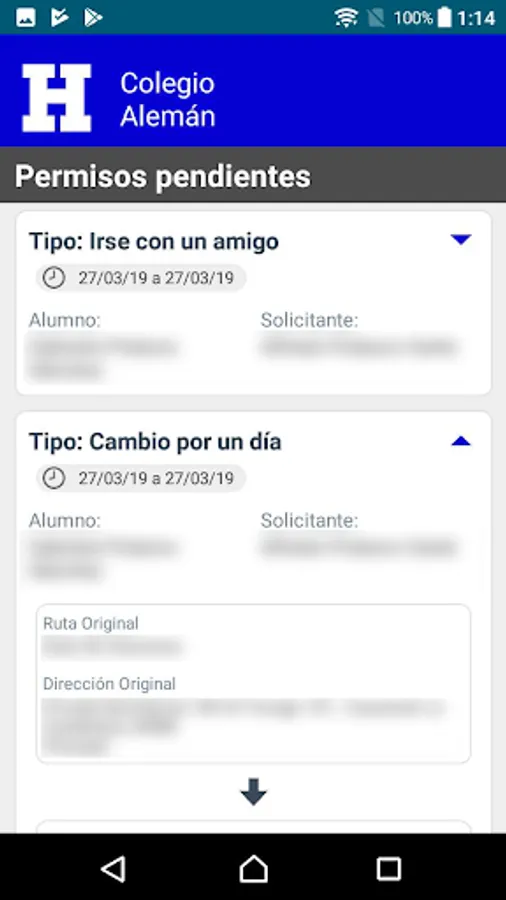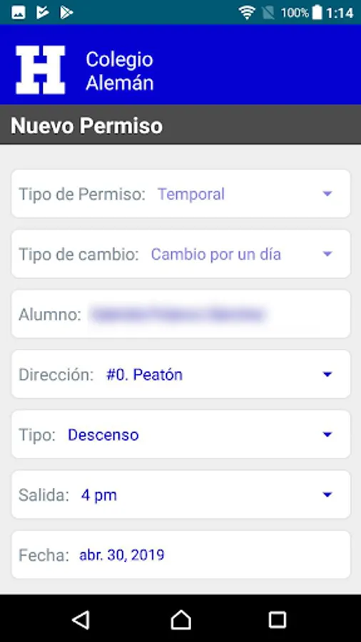 Application for the control and management of the School Transport of German School Alexander von Humboldt.