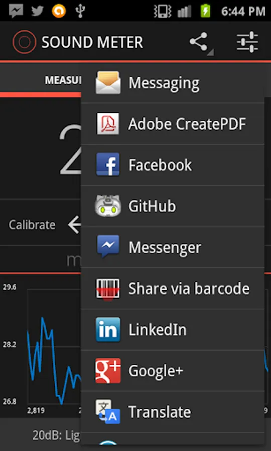 The app automatically displays the SPL measurement when you start it, the graph shows you the maximum and minimum values within 8 seconds.