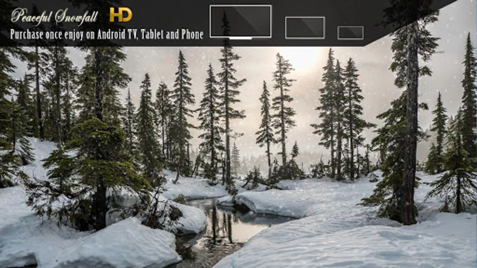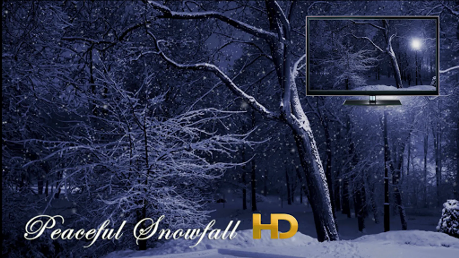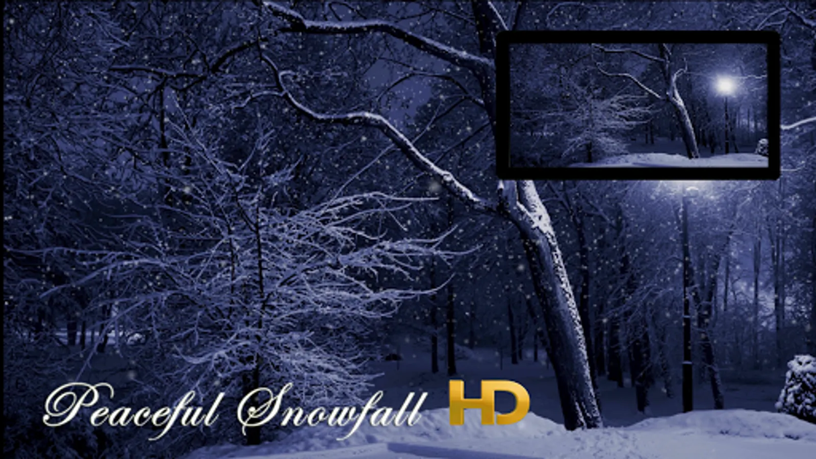 Peaceful Snowfall HD in full screen HD with gorgeous Winter Scenes coupled with real like falling snow, with a choice of ambient and Christmas music and snowfall SFX.