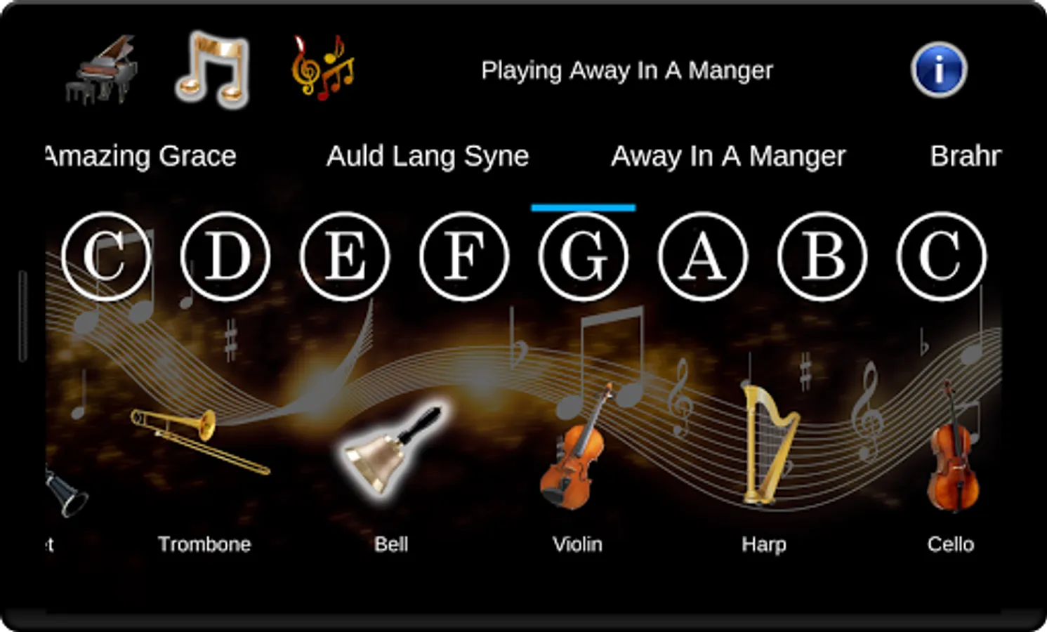 the basic notes of CDEFGAB as well as the different instruments sounds.
