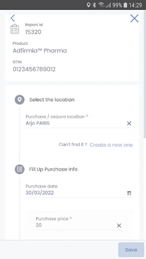 2. Select your product by scanning the barcode or select your product in the picklist.