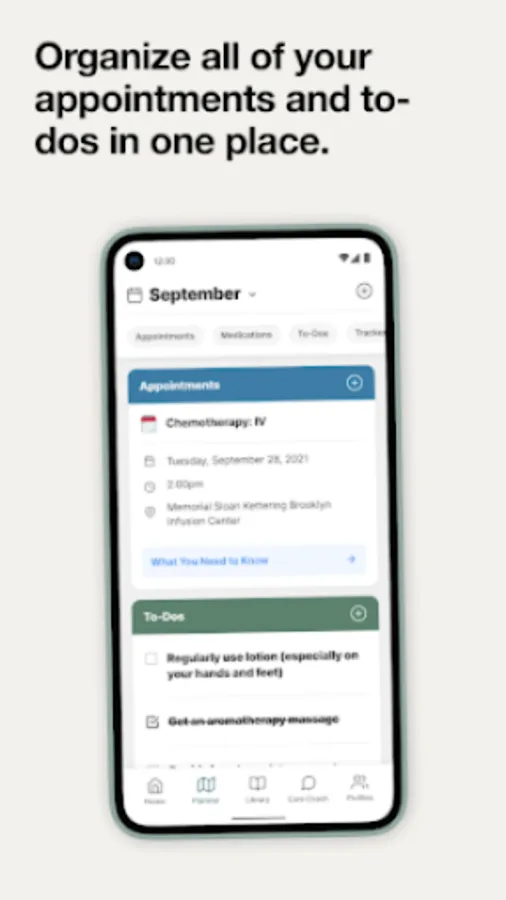 The Cancer Care Direct (CCD) app makes it easy to keep track of your day to day care while providing recommendations that are personalized to your diagnosis and treatment. Manage your appointments, track your medications, and rate your symptoms and mood, all in one place with CCD.