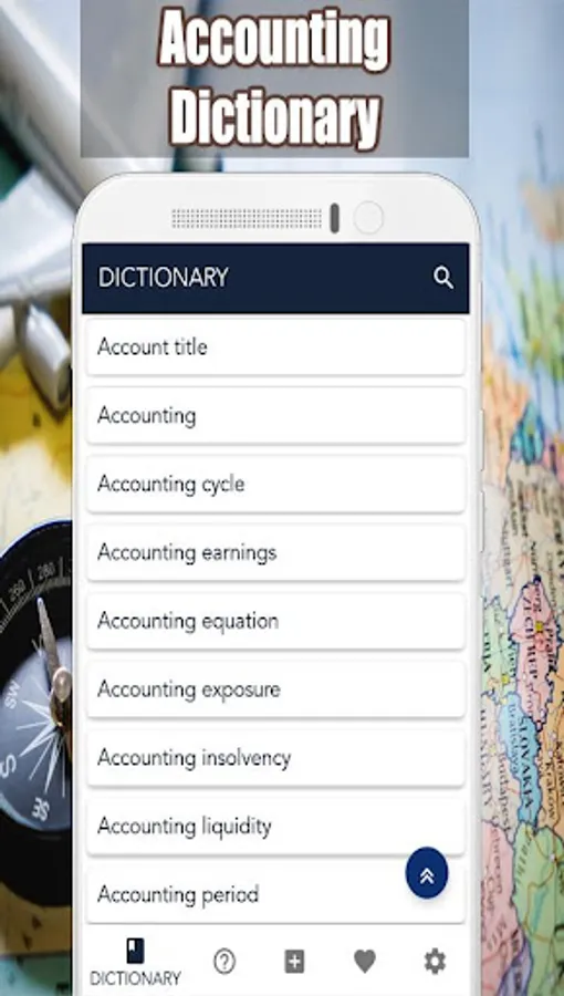 accounting words dictionary basic idea of an accounting terms that assists people learn new vocabulary and accounting principles speedily that helps them to recall info for the long time. Once you install the accounting terms dictionary, enter the word in search box that you are looking for and get the detail explanation with the usage of it.