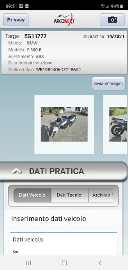 With a few simple steps you can create personalized files, complete with photos, for each vehicle. In addition to the photos, you can also enter the basic information you will need for the publication of the announcement on the Dueruote portal. By A.R.C.O. you just need to import the practices and with one click you can publish your ads.