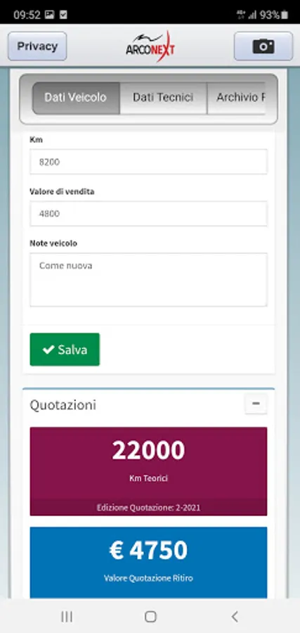 iArco allows you to take pictures of your vehicles directly in the salon and send them to A.R.C.O ..