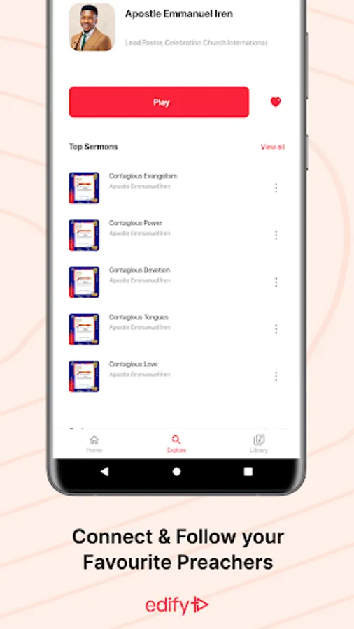 Download Edify today and start streaming powerful, uplifting sermons that will inspire you to live your best life in Christ.