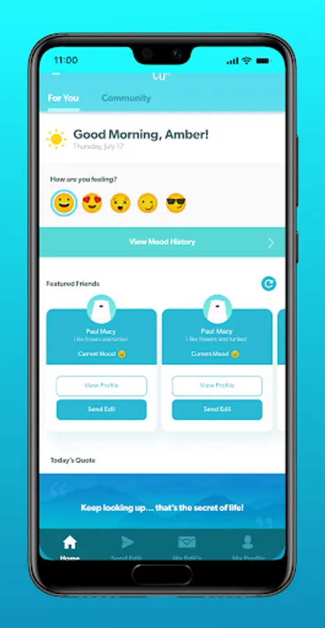 Designed to help support mental health issues by preventing feelings of anxiety and depression, Edii is meant to brighten someone’s day with sending anonymous messages of love, encouragement, memories or compliments to any friend in your contacts. Edii sends notifications when people you know update their mood status so you can encourage or praise them with kind words. Edii also intuitively sends suggestions of conversational things to talk about and reminders of how often to check in with your friends