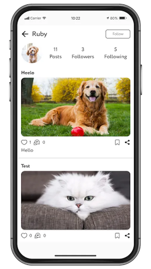 Post in the feed, share your experience, ask questions, follow other animal lovers, connect with them and make new friends.