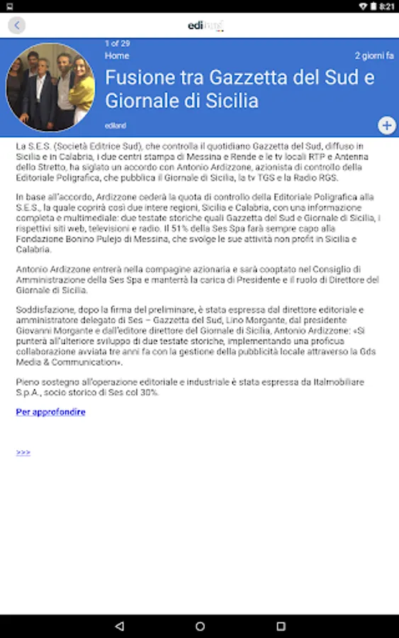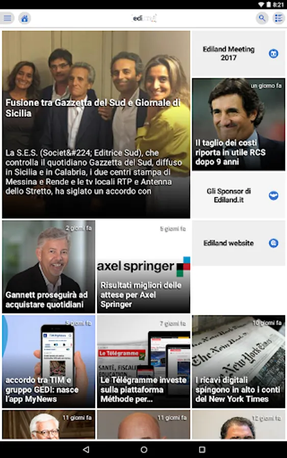 Ediland is the app with which you can access the latest information on the industry editorial, in Italy and abroad. Data on the distribution and readership, advertising, economic performance of enterprises, new initiatives and paper and digital products: on Ediland find everything you need to know about the publishing industry, with a specific focus on daily newspapers.