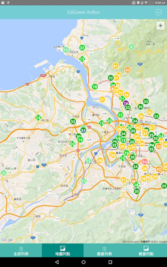 Location filter (EdiGreen AirBox, LASS, Environmental Protection Administration, malfunction or offline stations).