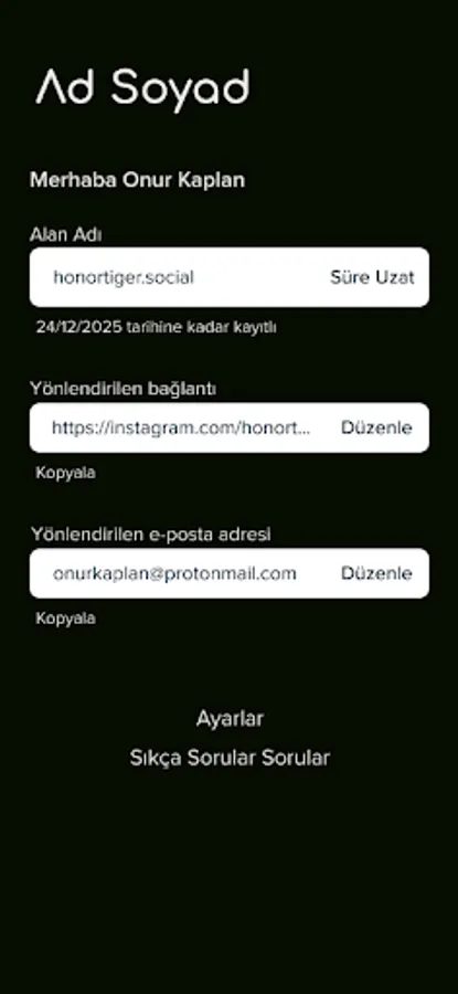 The "Name Surname" application is the perfect solution for obtaining and forwarding a personal domain name. Thanks to this application, even non-technical users can create a unique profile on Instagram, Twitter and other social media platforms. Users can easily get a personal domain name and point it to any URL they want. They can also create email addresses associated with the domain name.