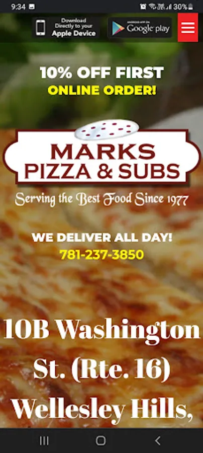 Since 1977, Mark's Pizza and Subs has been serving delicious pizza, subs, chicken fingers and other Italian and Greek food to customers in the Wellesley, MA area. In addition to our comfortable indoor and outdoor dining areas, Mark’s offers free delivery all day! There is also a convenient parking lot right outside our building.
