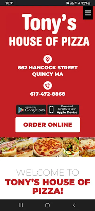 Download the official Tony's House of Pizza app - order online and on the go! We feature a wide assortment of delicious items, including our famous pizza, Tony’s Burgers, fresh salads, hot and cold subs, seafood, pasta and more. We take pride in using high quality ingredients and cooking almost everything from scratch. Please stop by or have us deliver a delicious meal to your doorstep.