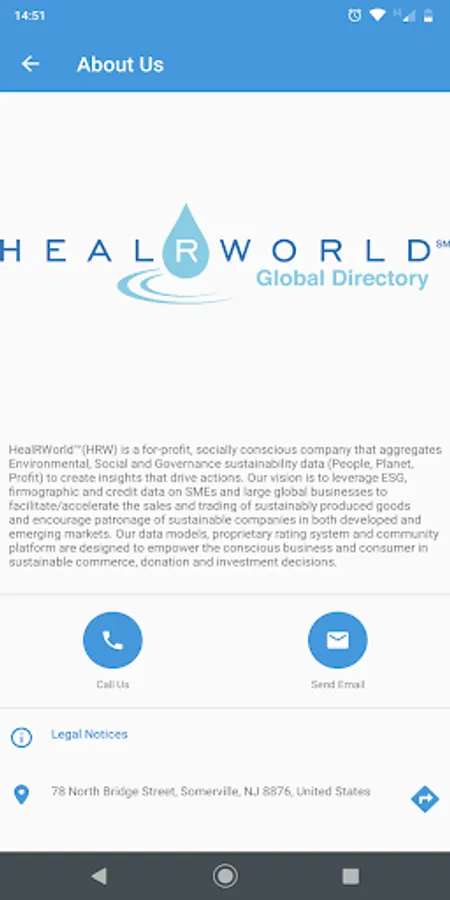 HealRWorld™(HRW) is a for-profit, socially conscious company that aggregates Environmental, Social and Governance sustainability data (People, Planet, Profit) to create insights that drive actions. Our vision is to leverage ESG, firmographic and credit data on SMEs and large global businesses to facilitate/accelerate the sales and trading of sustainably produced goods and encourage patronage of sustainable companies in both developed and emerging markets. Our data models, proprietary rating system and community platform are designed to empower the conscious business and consumer in sustainable commerce, donation and investment decisions.