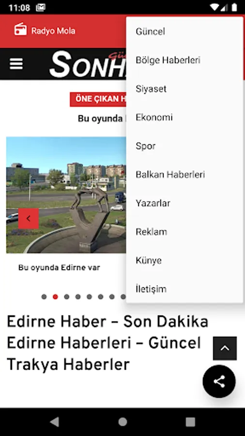Edirne, Kirklareli, Tekirdag, Canakkale briefly breaking news from every point of the Marmara Region and the Balkan countries, politics, columns, agenda, economy, sports, developments in the world of social media with the news application "Edirne Sonhaber" next to the newspaper.