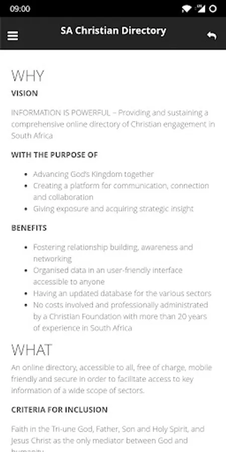 The South African Christian Directory (SACD) is a comprehensive online directory of all Christian activities in South Africa for the purposes of collaboration, communication and connection.