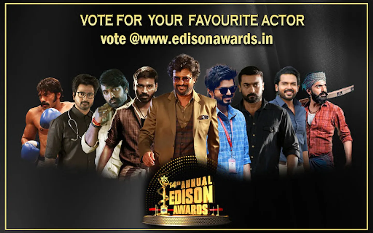 Over the period of Twelve years, we have been felicitating the actors and technicians with great potentials through Edison Awards that are hosted in the honour of Father of Cinema - Thomas Alva Edison. For the past ten years, from the ace personalities like Vijay, Dhanush, Vikram & Vijay Sethupathi to the young league of technicians like Anirudh, everyone is so much inquisitive about their names being nominated for the Edison Awards.