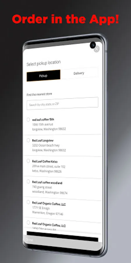 Grab the Red Leaf Coffee app and get the convenience of placing orders directly from your phone. For pickup at your favorite Red Leaf Coffee location or for delivery (distance restrictions apply). Earn loyalty points, get push notifications for specials, new drinks and your favorite eats. Engage with other Red Leaf Coffee drinkers on our community wall.