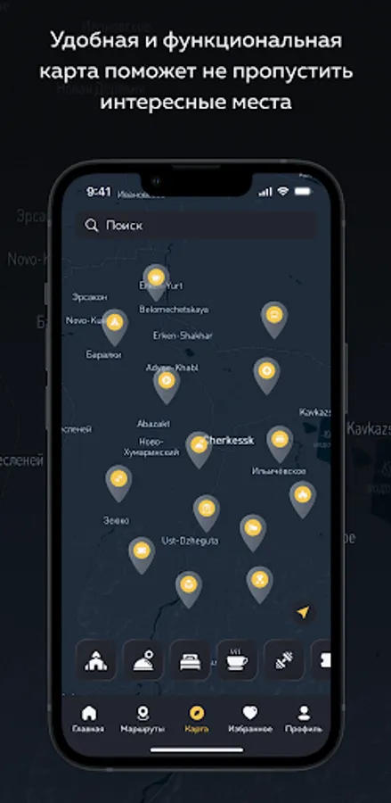 At the moment, the KatadZe application has information on the sights and institutions of the Karachay-Cherkess Republic, Kabardino-Balkaria and the Stavropol Territory. In the future, locations of other regions of the North Caucasus will appear.