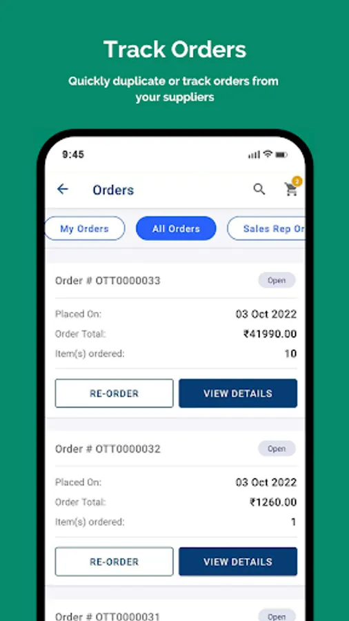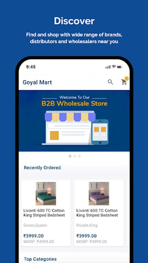 Build your own private and customizable B2B commerce store for your wholesale business. Its a powerful and easy to use mobile app for your B2B customers to place orders anytime, anywhere. Share your store to platforms like WhatsApp Business, IndiaMart, TradeIndia, Udaan, JustDial, JDMart, Bikayi, Anar, Facebook Marketplace (B2B).