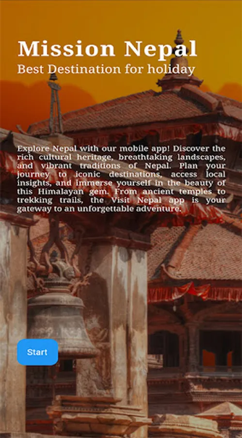 Welcome to the Mission Nepal Android App, your ultimate companion for exploring one of the world's most enchanting destinations, Nepal. Nestled in the heart of the Himalayas, Nepal offers a breathtaking blend of natural beauty, cultural richness, and adventure opportunities. Whether you're a seasoned traveler or embarking on your first journey, our app is designed to make your Nepal experience unforgettable, hassle-free, and tailored to your preferences.