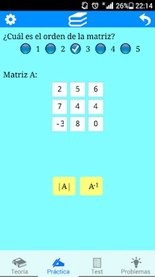 - Practice: it allows calculating determinants (using the Gaussian method and making zeros) and inverse matrices (both with the Gaussian rule and by attachments).