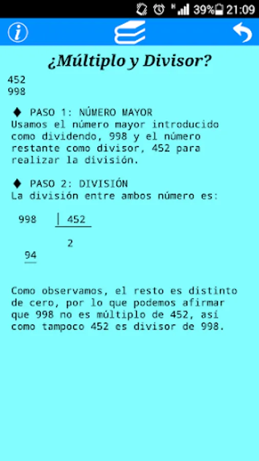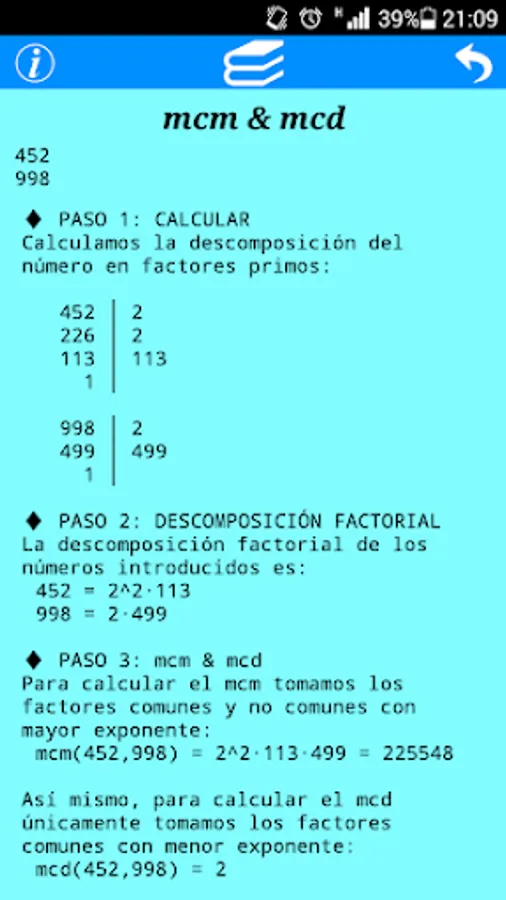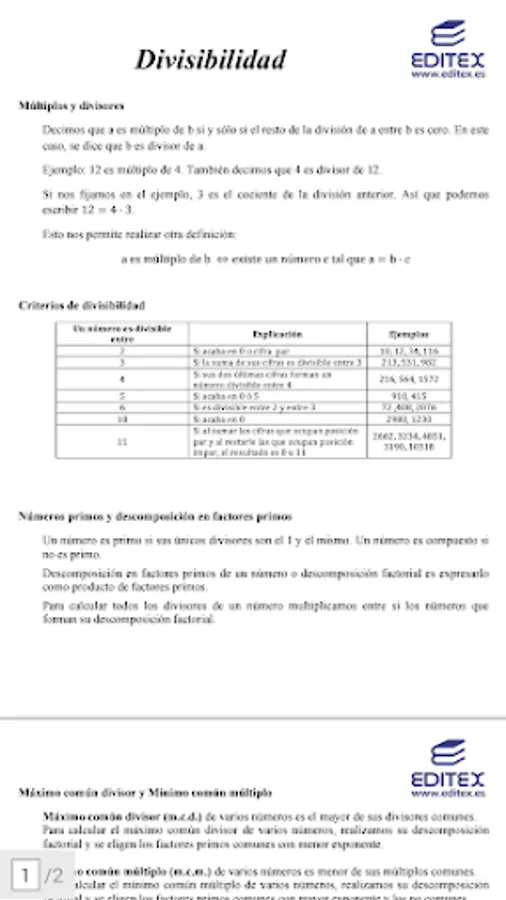 This application of Editorial Editex S.A. Calculate the LCM and the LCD between two numbers. It includes the following sections: