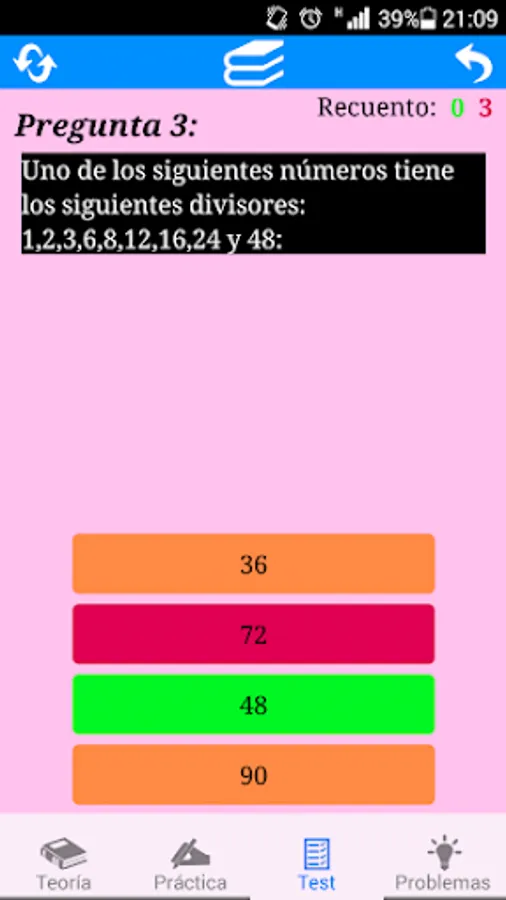 - Test: allows you to perform a self-assessment with 10 test-type exercises collected randomly