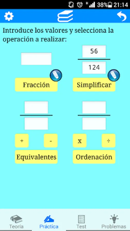 - Practice: in addition to calculating basic operations with fractions, it allows you to convert decimal to fraction, simplify fractions, as well as show if two fractions are equivalent and order them.