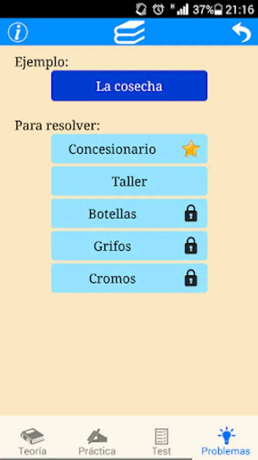 - Test: allows you to perform a self-assessment with 10 test-type exercises collected randomly.