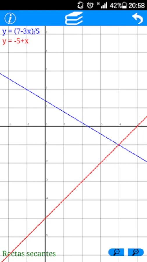 - Practice: allows the resolution of systems and provides a graph of the functions associated with the entered equations, as well as a geometric interpretation of them.