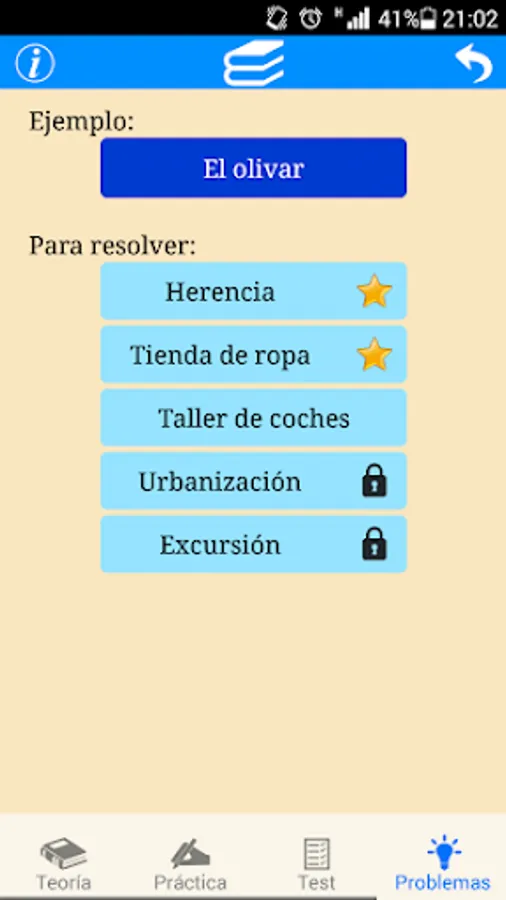 - Test: allows you to perform a self-assessment with 10 test-type exercises collected randomly.