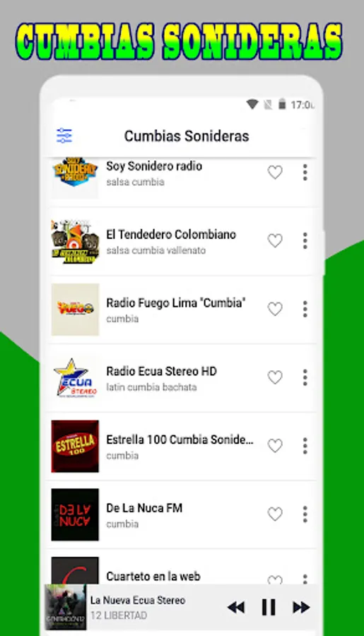 Cumbias Sonideras Gratis tiene mas de 250 radios de todo el mundo donde se escucha este genero musical, ademas puedes usar el buscador para encontrar la musica de tu agrado.