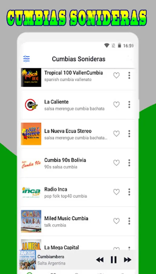 Cumbias Sonideras Gratis y una gran variedad de generos musicales, estan incluida en esta app de cumbia sonidera.