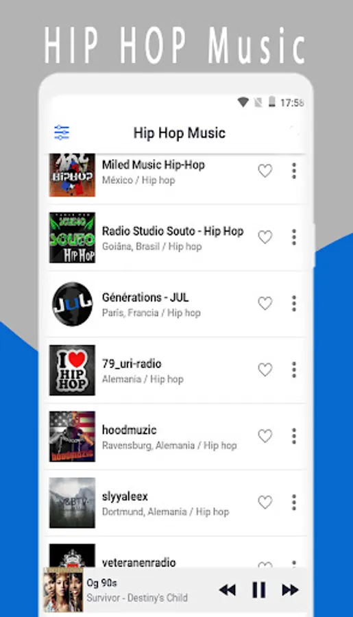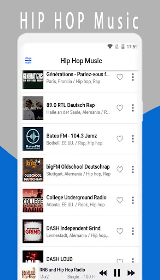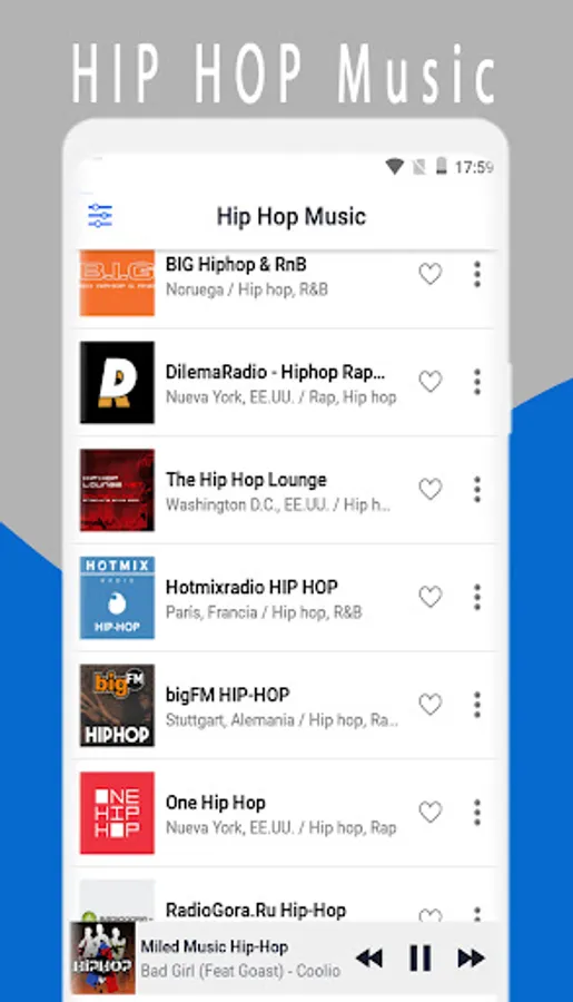With a friendly interface very easy to use and listen to your hip hop radio, to have access you only need to be connected to the internet or Wifi.