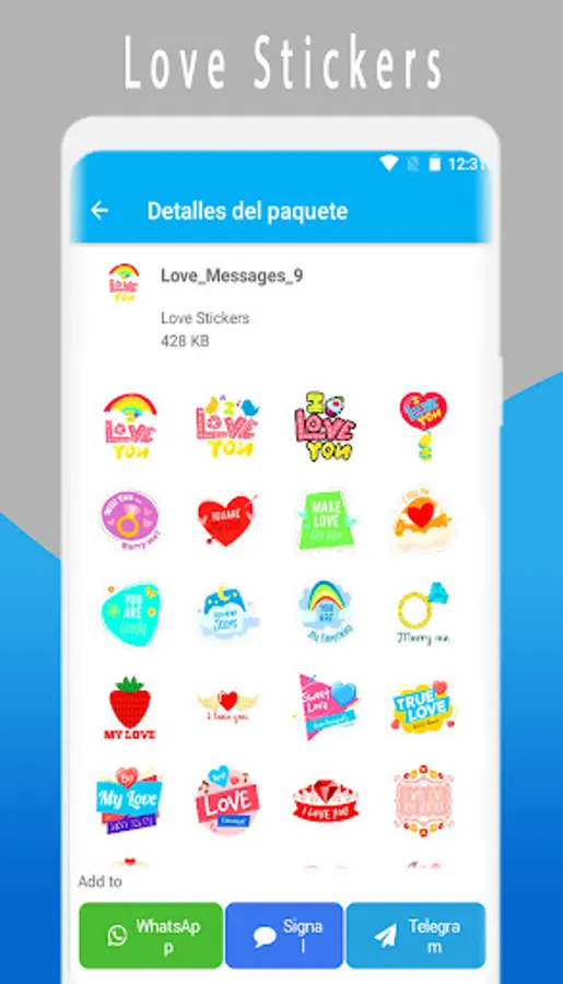This application contains a gallery of select love stickers for telegram that will undoubtedly be liked by everyone, we offer you a collection of love stickers for telegram or sticker for signal with a single click you can share with your friends.