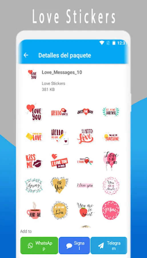 Stickers for Signal, WhatsApp and Telegram.You will have at your disposal an app that is constantly evolving and that will offer you more stickers in the future, the application obtains its Stickers from the Internet, so it is very possible that you will find some new ones every time enter it!