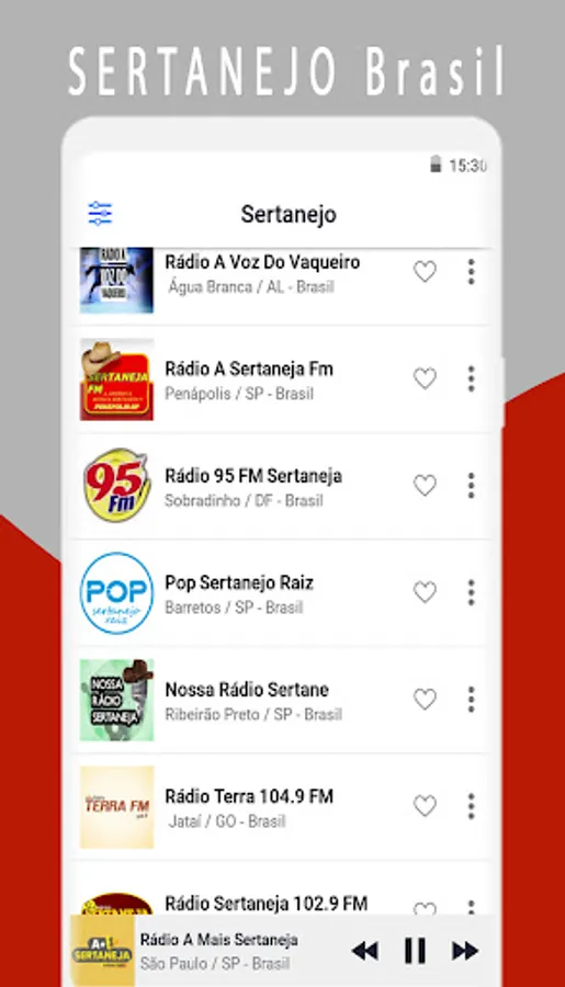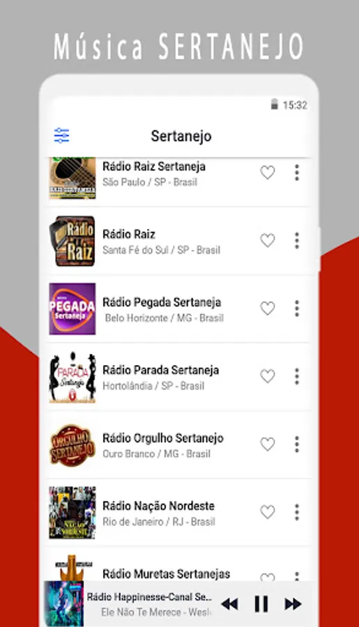 With a friendly interface very easy to use and listen to your Musica Brasileira Sertanejo, to have access you only need to be connected to the internet or Wifi.