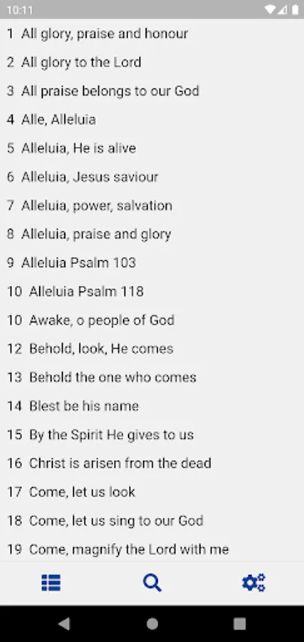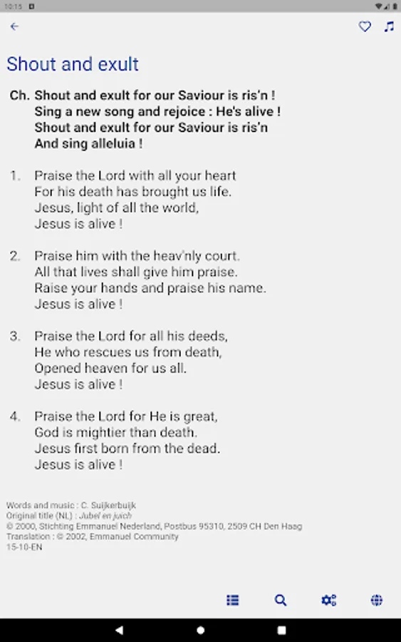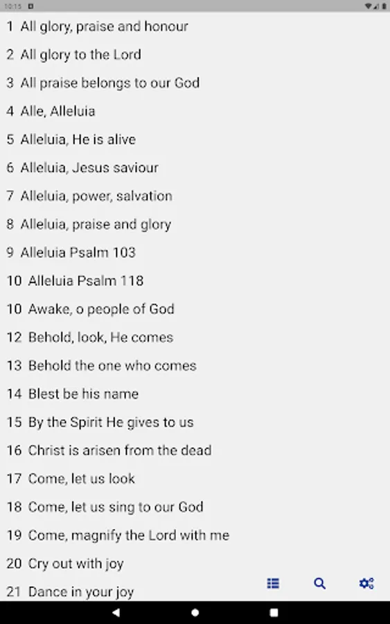 Optimize your searches thanks to the search by category of the songbook (praise, hope and trust, Mary, etc.), by page of the physical songbook, or by song title.