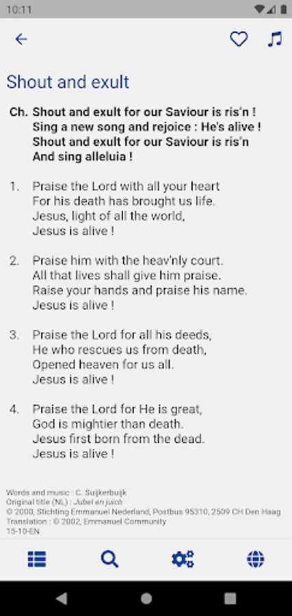 - the available translations in different languages for each song