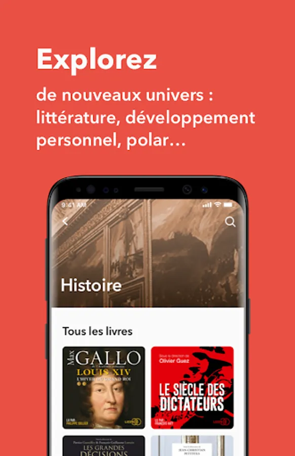 You are spoiled for choice: Literature, crime fiction, personal development, history, youth, etc. There is something for every taste. Hundreds of tracks are ready to be listened to and savored on Lizzie. Take the time to browse our large catalog and listen to as many extracts as you wish in order to find your future gem.